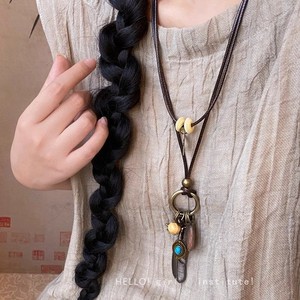 新しい中国風の禅ブロンズフェザーネックレス女性のボヘミアンエスニックスタイル二層ロングセーターチェーンアクセサリー