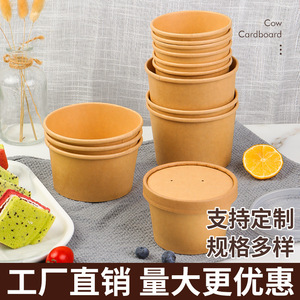 一次性牛皮纸汤桶汤杯汤碗粥碗餐盒外带盖圆形打包盒卖粥桶纸碗
