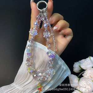 双链水晶花束五角星吊坠手机挂链包包钥匙扣短款手腕挂绳女款外贸