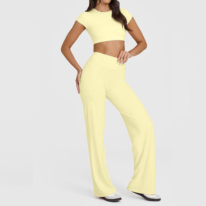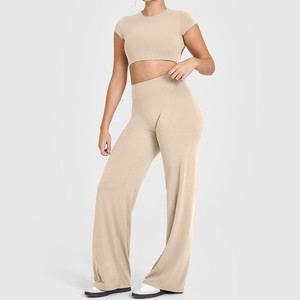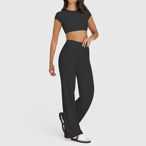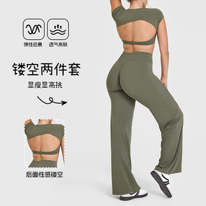 ショートバックレススポーツトップ、胸パッド付き半袖ストレートパンツ、ヨガパンツ、ヨーロッパとアメリカのヨガウェアレディーススーツ