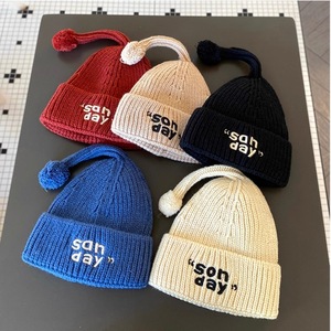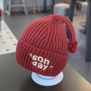 宝宝针织帽可爱冬天俏皮尾巴针织帽男女孩幼童保暖毛线刺绣字母帽