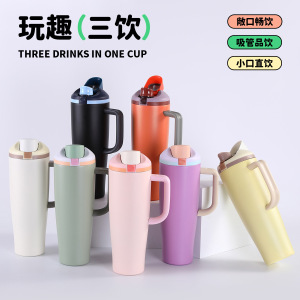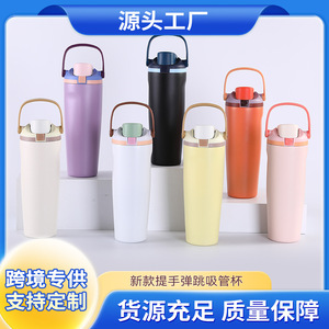 クロスボーダー 30 オンス車用バウンスカップ 304 ステンレス鋼二層真空車カップロックハンドヘルドダブルストローカップ