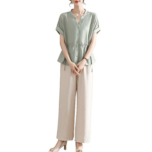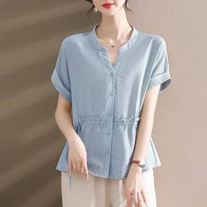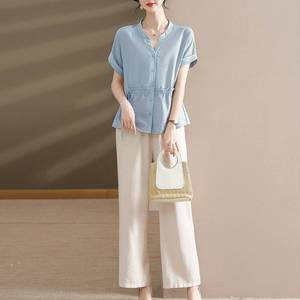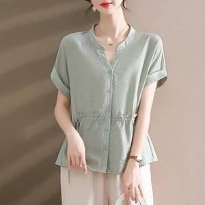 中年母親のサマースーツファッショナブルな半袖シャツ2025新しいスタイル中高年女性のファッショナブルな高貴なシフォントップ