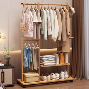 賃貸住宅のコートラック、床置きベッドサイド洋服ラック、シンプルな家庭用屋内ベッドサイド無垢材収納アーティファクトワードローブ