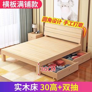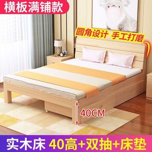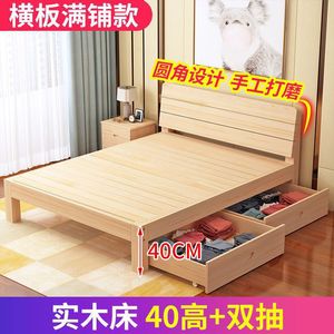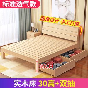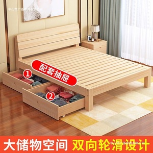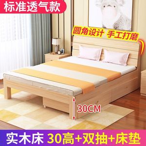 ベッド ホームベッドルーム シンプル無垢材ベッド 1.8m ダブルベッド 大人用 経済的 シンプルベッド レンタルルーム 寮 1.5