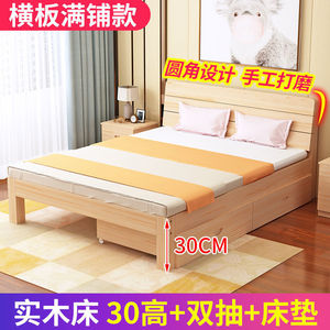 ネイキッドベッド 高さ30+二段引き出し+マットレス【横板フルベッドボード】
