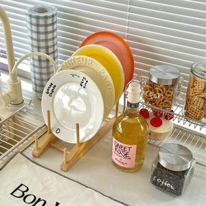 元槿楠竹碗盘杯子沥水架展示架子收纳水杯碟沥水托超市碗餐盘架子