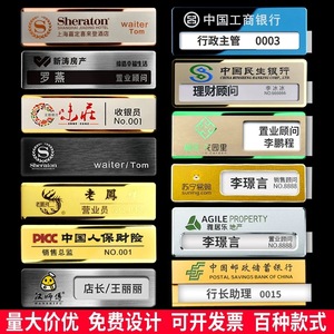 胸牌定做别针式工牌定制金属工号牌不锈钢姓名牌胸章徽章胸针订制