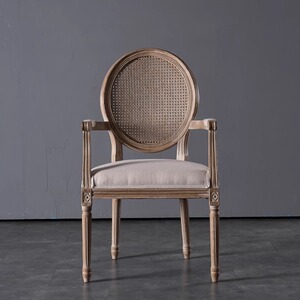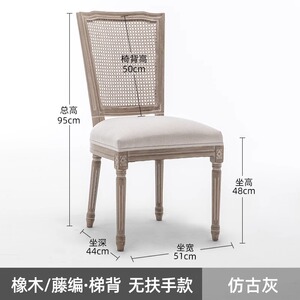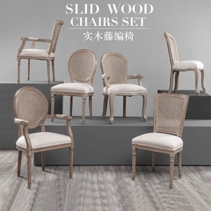 美式复古藤编餐椅实木法式椅子靠背咖啡厅酒吧民宿乡村休闲扶手椅