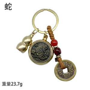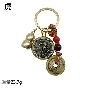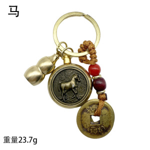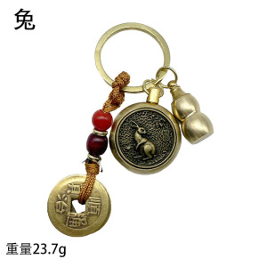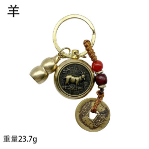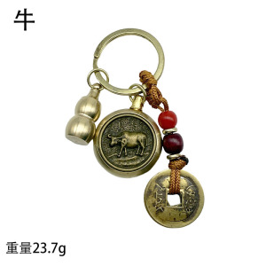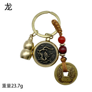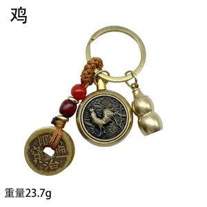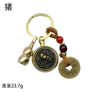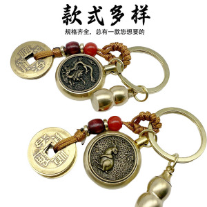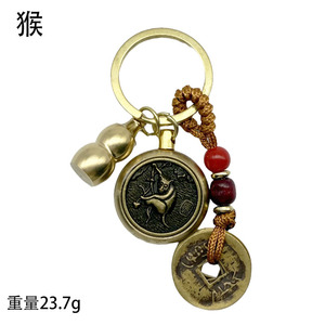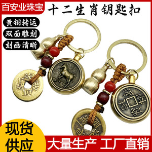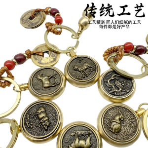 真鍮五帝マネー十二支回転キーホルダー純銅マネーカーペンダント景勝地ホットセールメーカー卸売