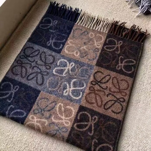 【对柜版本】棋牌格字母双面羊绒围巾女loe罗威羊毛围脖情侣款男