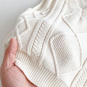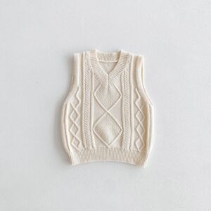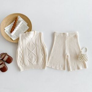 2025秋の新作韓国風子供服麻模様無地ベストニットプルオーバーミドルパンツセータースーツ