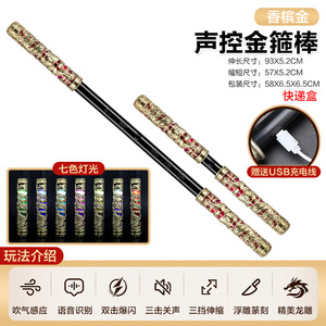 【香槟金】伸缩金箍棒-自动伸缩+风控+声控+七彩灯光+充电版(中文快递盒)489g