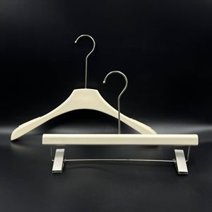 网红款奶油风米白色衣架服装店用仿木塑料防滑无痕衣服架裤夹批发