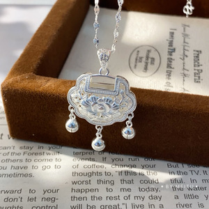 银佳银饰 足银999 富贵牡丹锁镂空吊坠 潮流 精品现货一件代发