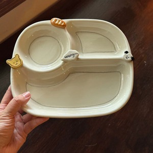 韓国ボタン子犬漫画セラミック家庭用丼フルーツボウル朝食ボウルペットボウル手描き釉下色ディープ LL