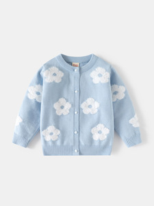 2025 秋と冬の新しい子供服女の子ソフトコアスパン糸ニットカーディガンベビー模造ミンクフラワー単層セータートレンディ