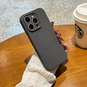 一体型AIカメラボタン付きiPhone17用スマホケース、液体シリコン製細いリング磁気吸着式Apple15保護ケース