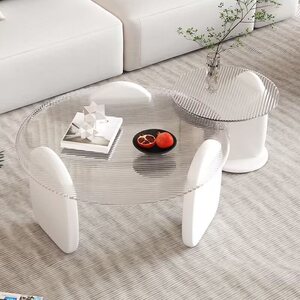 圆形茶几客厅家用小户型轻奢现代茶桌简约创意钢化玻璃茶几桌组合