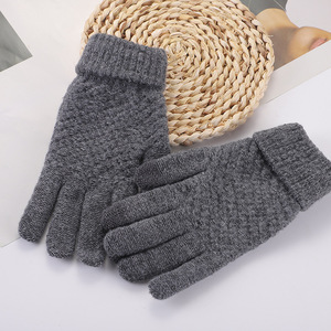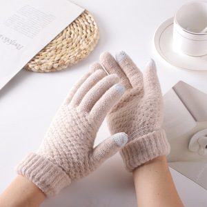 秋と冬のパイナップルスタイル模造カシミヤニット暖かいジャカードプラスベルベット厚みのある豪華な防寒タッチスクリーン手袋
