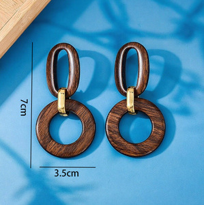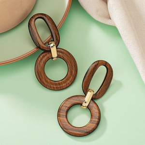 1件简哑光复古原创气质高级大气简约百搭耳环木头纹理树脂耳坠