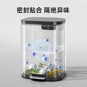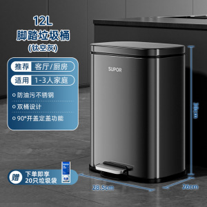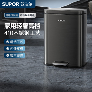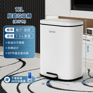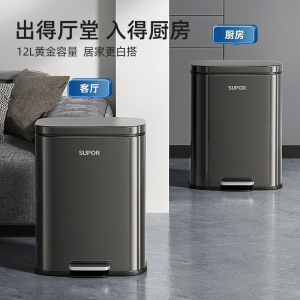 苏泊尔 家用脚踏不锈钢垃圾桶高颜值轻奢风卧室客厅厨房垃圾桶12L