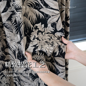 左岸ブラックエレガントなフレンチミッドセンチュリースタイルカーテンXu村開発ニッチデザイナー先染めジャカード生地カーテン