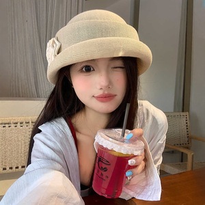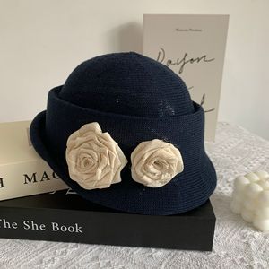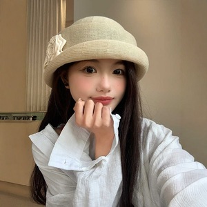 山茶花卷边亚麻贝雷帽女春夏季薄款透气高级感礼帽显脸小画家帽子