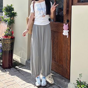 花苞阔腿灯笼裤女夏季2025新款高腰宽松小个子休闲白色八分气球裤