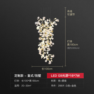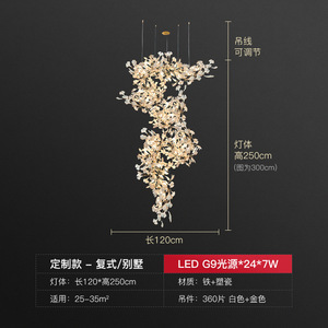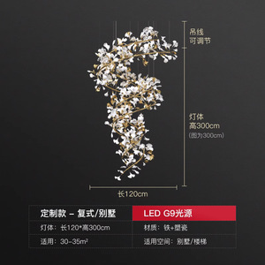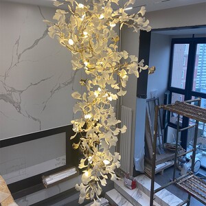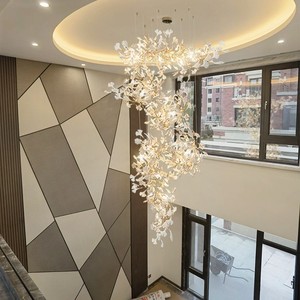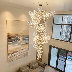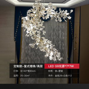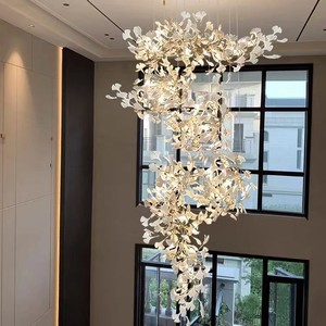 デュプレックスハウス大型シャンデリアロフト階段ライト高級ヴィラ中空スリップアップリビングルームロビー営業部イチョウの葉ランプ