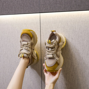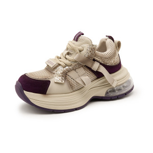 ハグベア本革厚底お父さん靴女性のための 2025 秋の新メッシュラインストーンカジュアルシューズ女性のスポーツジョギングシューズ