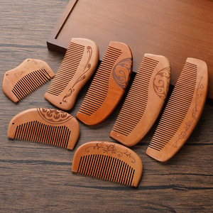桃の木の櫛ロングハンドル細歯ストレートヘアコーム木製櫛ギフト桃の木の櫛ポータブル初年度ギフト木製櫛彫刻ロゴ輸出