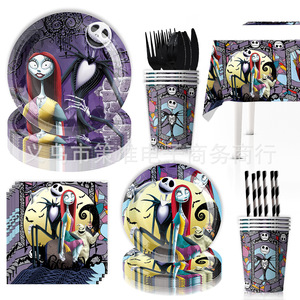 ハロウィンクリスマスナイトメアテーマパーティー装飾使い捨て食器紙コップテーブルクロスバナー装飾セット