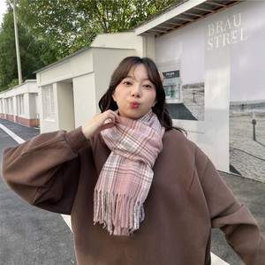 2024 新チェック柄タッセルスカーフドーパミン暖かい厚みのあるスカーフ秋と冬の韓国スカーフ