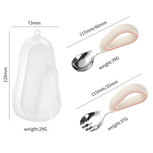 316 赤ちゃんの独立した食事スプーン、食べることを学ぶトレーニング、1 歳の離乳食サプリメント、シリコンインゴットスプーンとフォーク、子供用食事