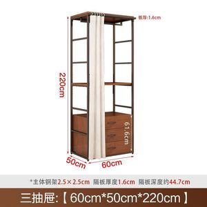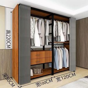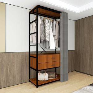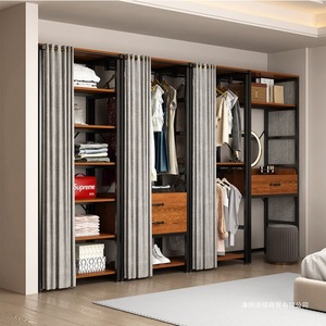 简约步入落地架子卧室金属铁艺框架挂衣架开放式衣帽间钢木衣柜子