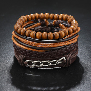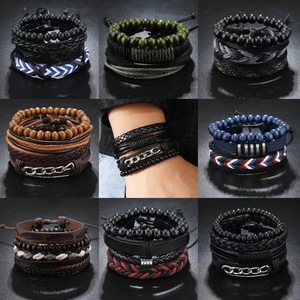 クロスボーダーヨーロッパとアメリカのレトロなスタイルの亜鉛合金アクセサリー DIY 4 ピースメンズブレスレットセット - 日常着に最適