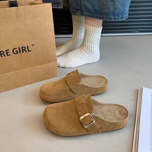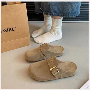 スリッポンアウターレイジーシューズ、レトロモリガール、万能、芸術的でシンプル、滑り止め2つ、韓国風ボーケンスリッパ