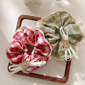学院风甜美格纹蕾丝发绳小熊大肠圈高颜值时尚百搭蝴蝶结头绳发饰