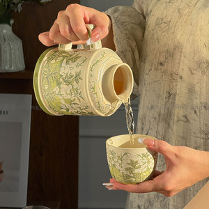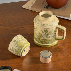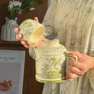 幸福スズランフラワーケトルカップホームアフタヌーンティーセラミックカップオフィスレトロマグセラミックティーカップ蓋付き