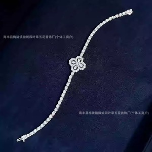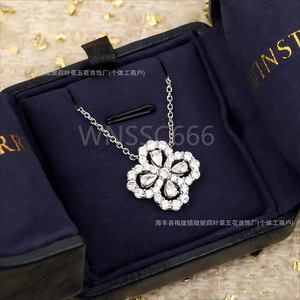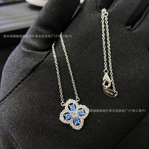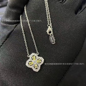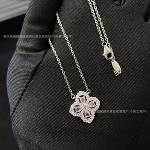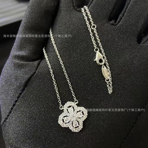 フルダイヤモンド四つ葉のクローバーネックレスレディース S925 シルバー HW ハイバージョンログネックレスライト高級ニッチハイエンド気質鎖骨チェーン