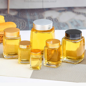 1斤 1.0kg 高級蜂蜜ガラスボトル 正方形の厚みのある木目蓋 巣ジャム 食品包装ボトル 透明シール