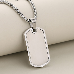 欧美跨境热销新款不锈钢军牌狗牌男士项链拼色吊坠个性百搭配饰女