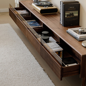 北米産ブラックウォールナットテレビキャビネット無垢材オーディオビジュアルキャビネットリビングルームコンビネーションキャビネットモダンシンプルスタイルハイフットテレビキャビネット