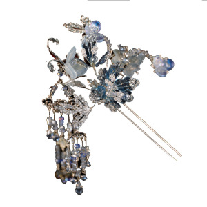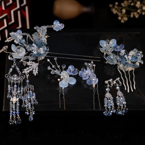 Xiuhe 頭飾り新しい中国風の古代衣装青いガラスの花のヘアピン Xiuhe スーツウェディングドレスチャイナドレスアクセサリー