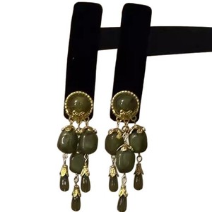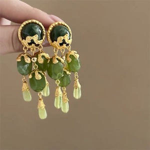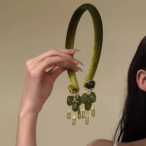 グリーンウォーターグリーンストーン〜新しい中国風クールエスニックスタイルレトロベルベットタッセルヘアピンヘッドドレスニッチハイエンドヘアアクセサリー