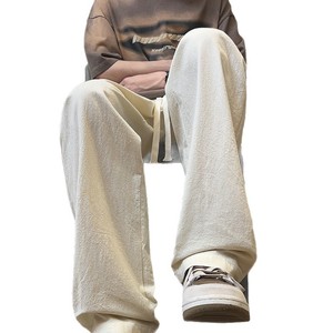 アプリコットコットンとリネンパンツメンズ夏薄いスポーツパンツルーズストレートカジュアルパンツアイスシルクワイドレッグパンツリネンレディースパンツ