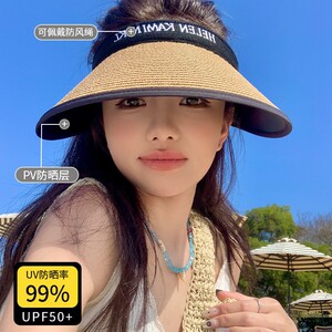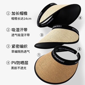 Yao Yao の大きなつばの麦わら帽子、空のトップの日焼け止め帽子、女性用夏用ヘアフープサンハット、紫外線防止機能なし、麦わら帽子