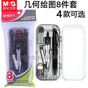 晨光90807八件套装圆规几何绘图考试套尺盒装学习尺子三角板文具