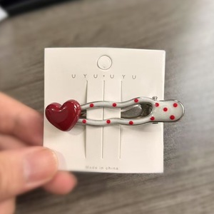 红色圆球波点蝴蝶结鸭嘴夹复古椭圆镂空波浪发夹刘海夹复古风国风